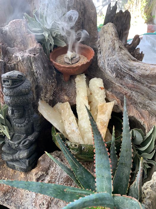 Copal, which is the unity of Earth and Water (tree and resin tears) when in contact with Fire (hot charcoal) completes the four elements with Air by creating smoke. The Mexica (people of Mexico) have honored the unity of power of the elements of nature. "