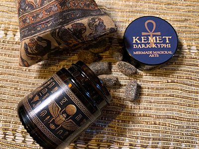 Kemet Kyphi is made with a traditional Egyptian formula base, but we have added a few botanicals and Essential oils to create a new, dark aroma: warm, slightly smoky, with a hint of fruitiness.